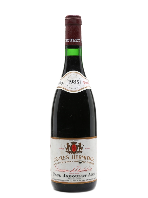 A bottle of 1985 Crozes Hermitage Domaine De Thalabert from producer Paul Jaboulet Ainé, grown in the north of the Rhone valley.
