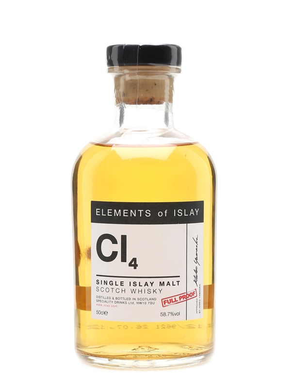 A bottle of Cl4, distilled at Caol Ila distillery and bottled by Speciality Drinks for the Elements of Islay range.
