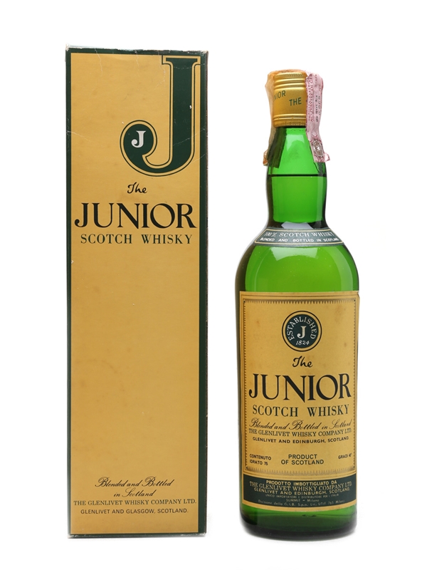 A bottle of The Junior Scotch Whisky, blended and bottled by The Glenlivet Whisky Company for Italian importer Summit. We estimate this was bottled in the 1970s.