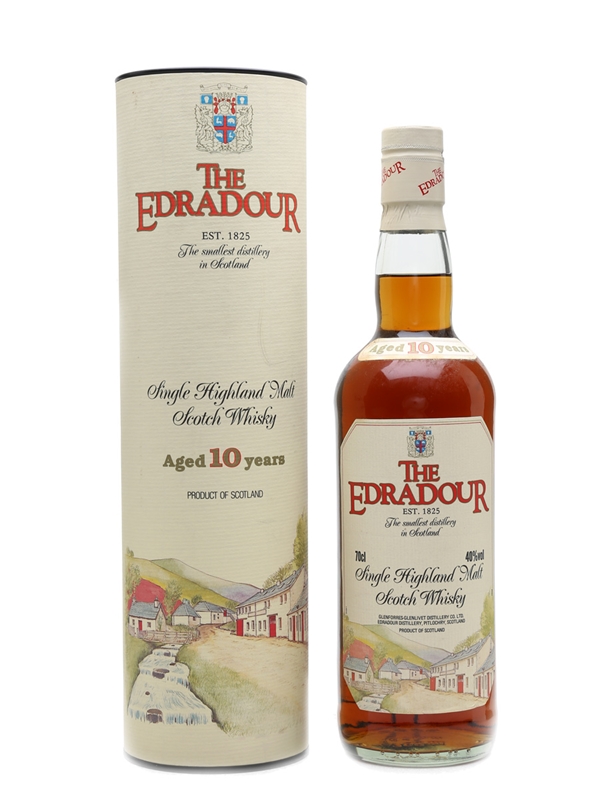 A bottle of The Edradour 10 Year Old, in the old style tall bottle. This bottle comes with a poster describing The Edradour's production process. We estimate this was bottled in the 1990s.