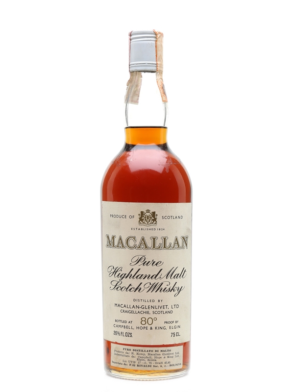 A bottle of The Macallan, bottled by Campbell, Hope and King, we estimate in the 1970s.