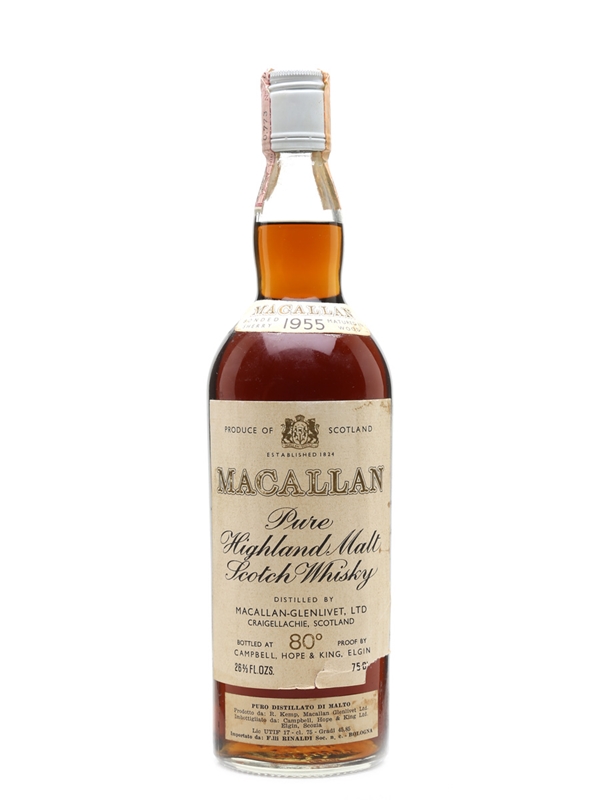 A bottle of The Macallan 1955, bottled by Campbell, Hope and King, we estimate in the 1970s. This was imported for the Italian market by Rinaldi.