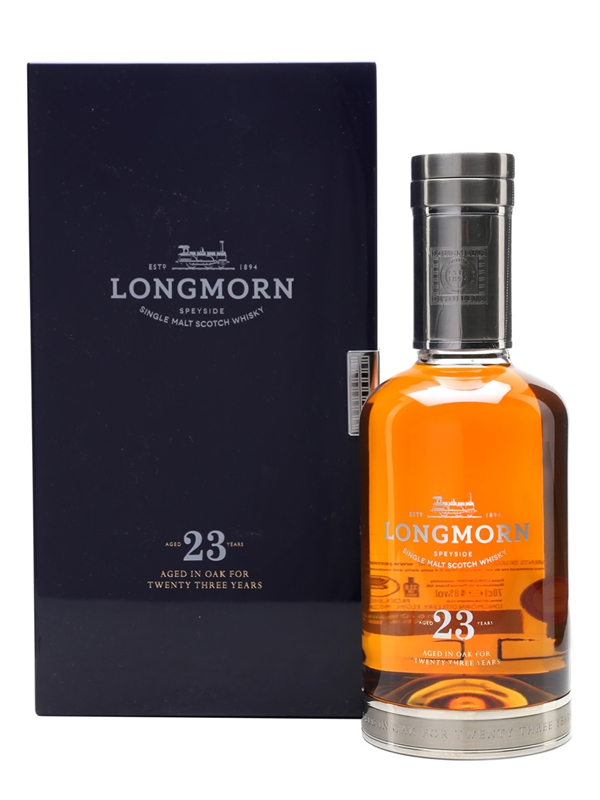 A bottle of Longmorn 23 Year Old Speyside single malt.