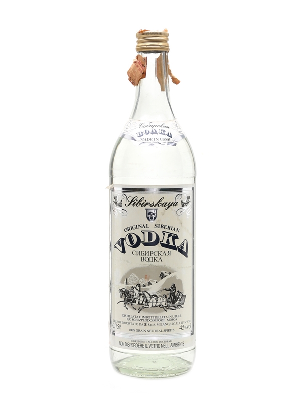 A bottle of Sibirskaya vodka. This was produced and bottled in the USSR by Sojuzplodoimport, we estimate in the 1980s.