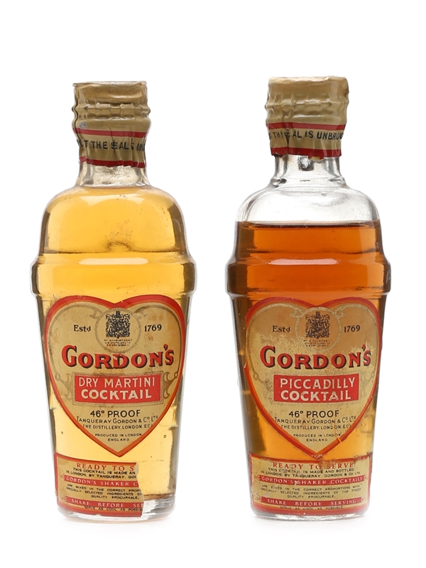 Gordon's Dry Martini & Piccadilly Cocktails Bottled 1940s-1950s - Spring Cap 2 x 5cl / 26%