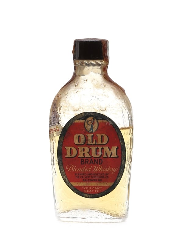 A bottle of Old Drum Brand 4 Year Old Blended whiskey. This was blended and bottled by The Calvert Distilling Co, Baltimore, MD, we estimate in the 1940s.