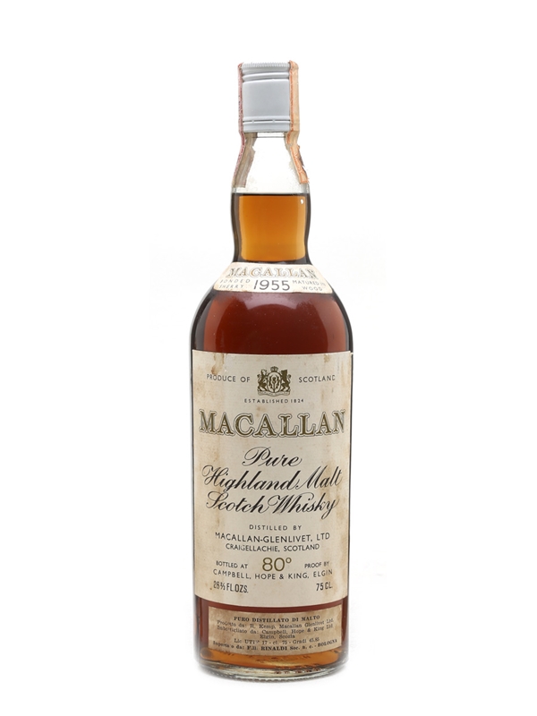 A bottle of The Macallan 1955, bottled by Campbell, Hope and King, we estimate in the 1970s. This was imported for the Italian market by Rinaldi.