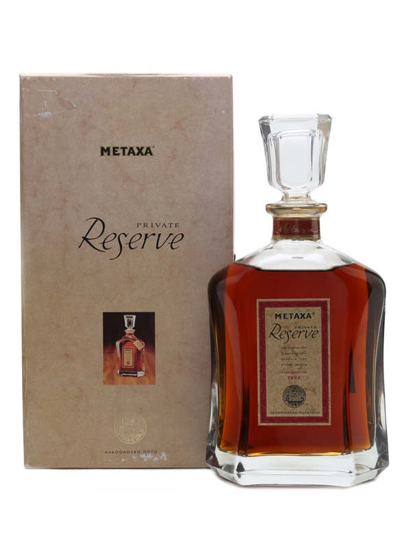 A bottle of Metaxa Private Reserve Brandy from Greece.