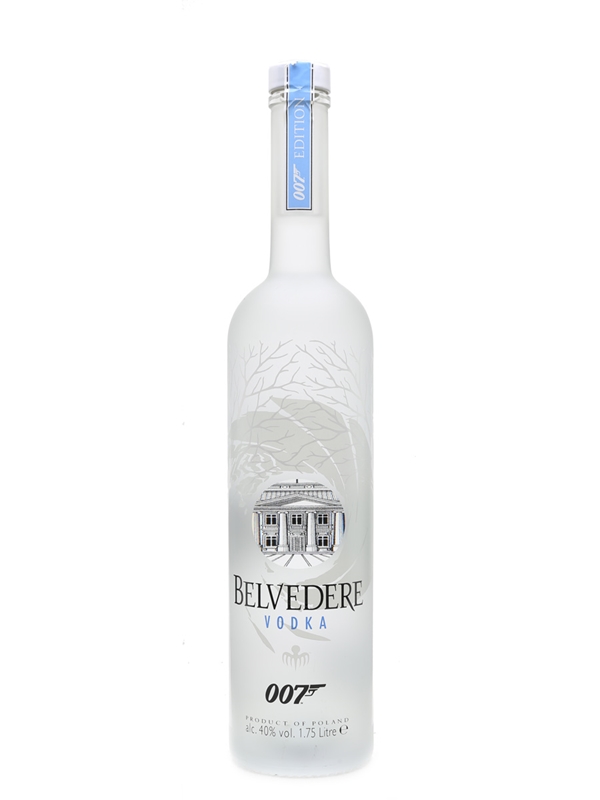 A large format magnum of Belvedere vodka. This Spectre 007 Collector's Edition has a button in the base to illuminate the bottle.
