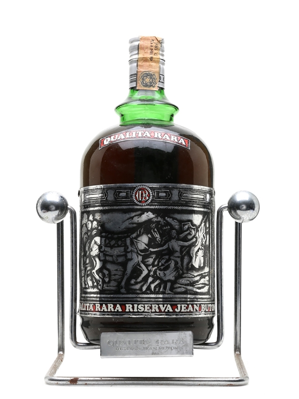 A magnum of Jean Buton Qualita Rara Riserva brandy from Italy. This is presented in a metal cradle for easy pouring.