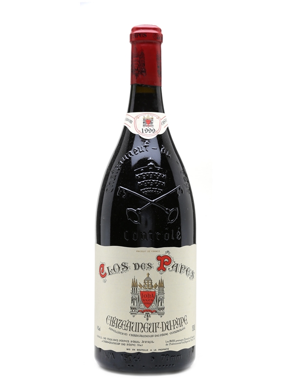 A large format magnum bottle of 1999 Châteauneuf du Pape from producer Clos des Papes, from the Southern Rhône's most celebrated appellation. Clos des Papes is a 32 hectare property combining 24 different parcels of vines, including one walled vineyard or 'clos' near to the pope’s castle, hence the name.