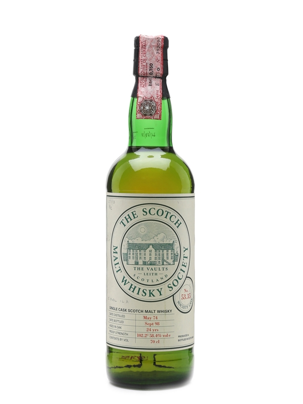A 1974 vintage whisky from the Scotch Malt Whisky Society. This whisky was distilled at Caol Ila distillery in May 1974, matured for 24 years, and bottled in September 1998.
