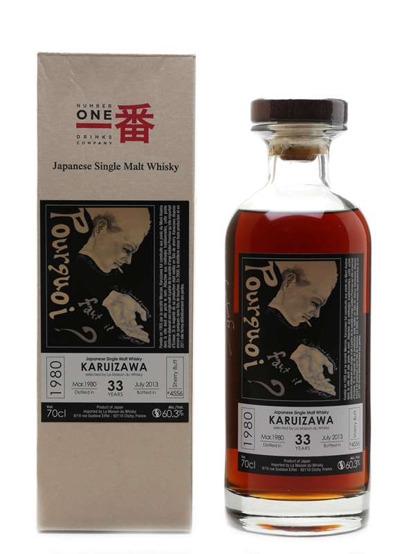 A bottle of Karuizawa 33 Year Old 'Pourquoi Faut Il' . This was distilled in March 1980, matured in a single sherry butt, and bottled in July 2013 for French whisky merchant La Maison du Whisky.