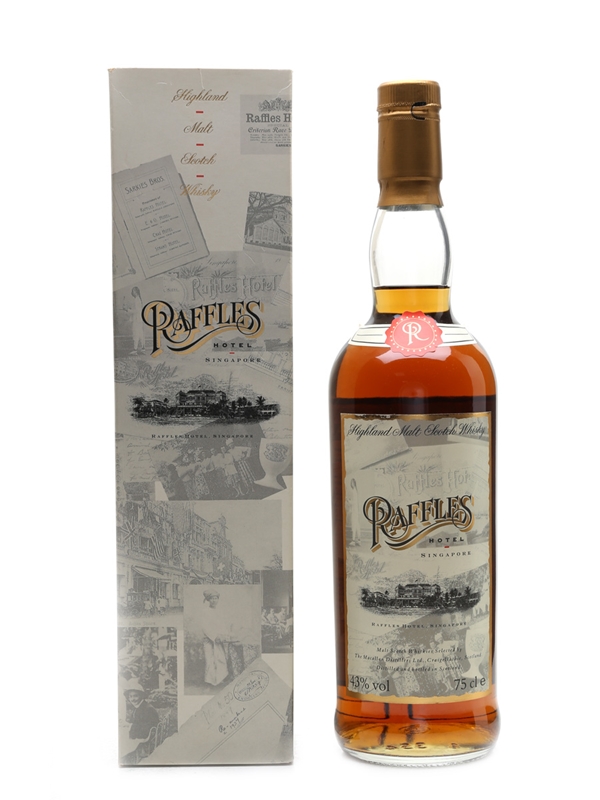 A bottle of Macallan Highland Malt Scotch Whisky, bottled for Raffles Hotel, Singapore.