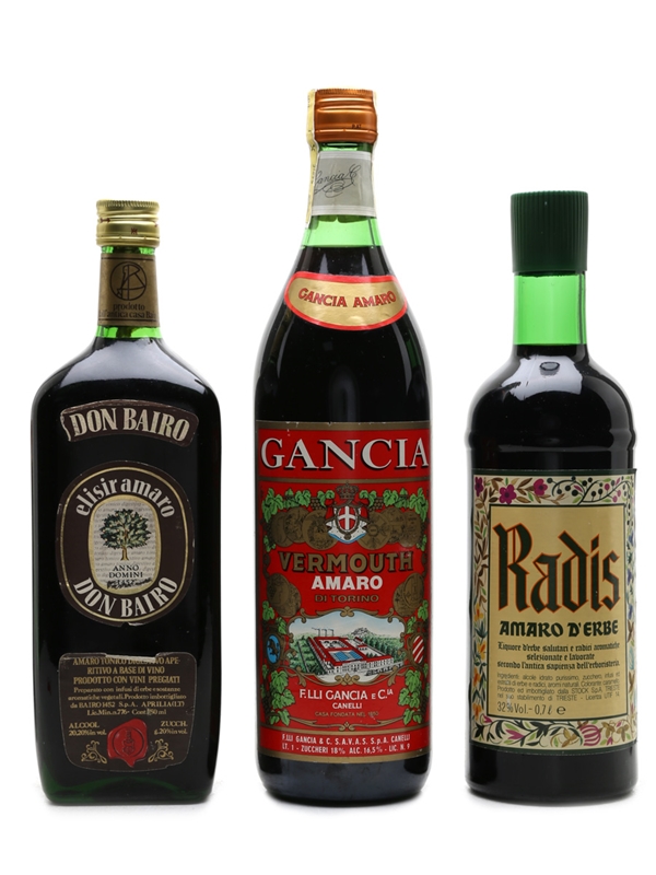 Assorted Italian Bitters Don Bairo, Gancia, Radis 100cl, 75cl & 70cl