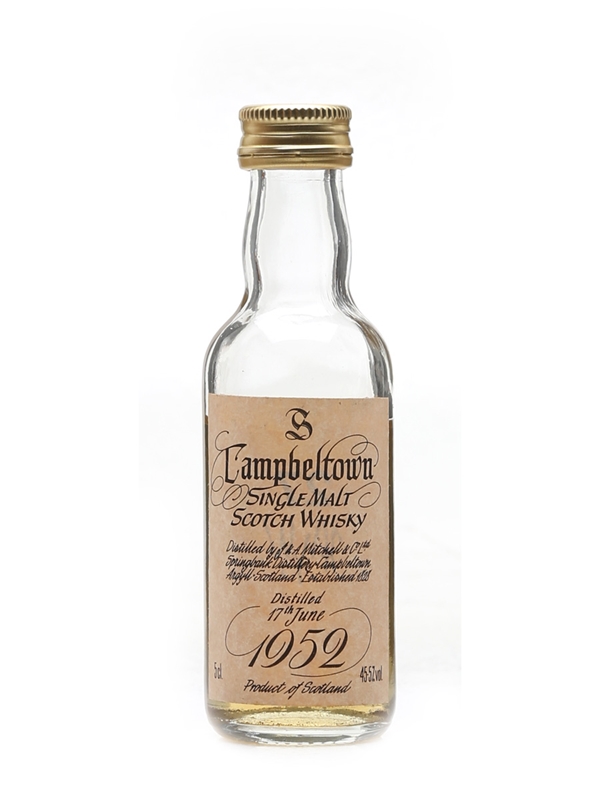 A bottle of Springbank Campbeltown single malt, distilled on 17 June 1952. We estimate this was bottled in the 1980s.