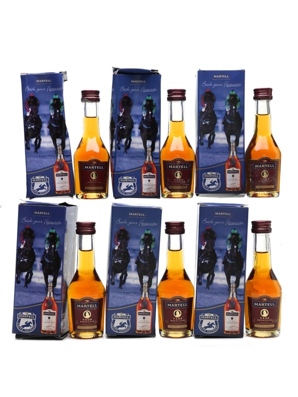 This lot contains six bottles of Martell Medaillon VSOP, bottled for the Grand National horse race.