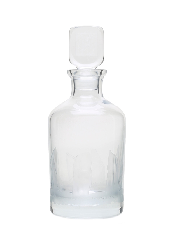 A Highland Park decanter with stopper, produced by Caithness Glass and engraved with the Ring of Brodgar, a Neolithic stone circle on the main island of Orkney.