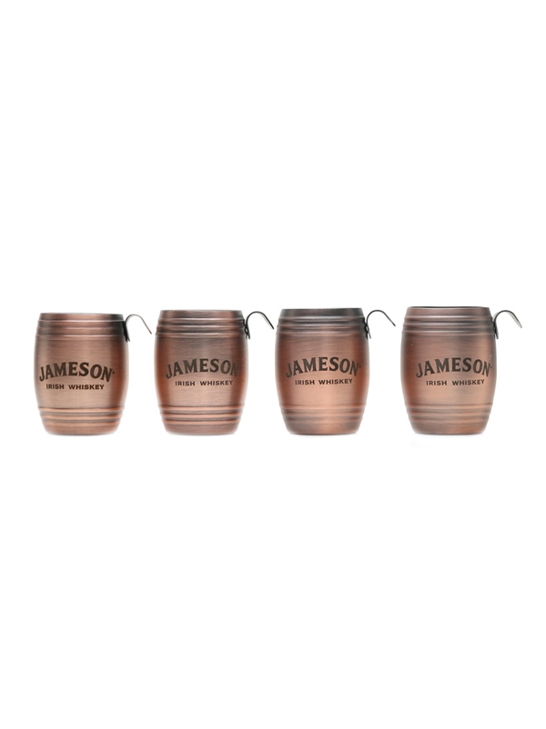 This lot contains four copper cups produced by Jameson. These measure approximately 5.5cm tall and 4cm wide.