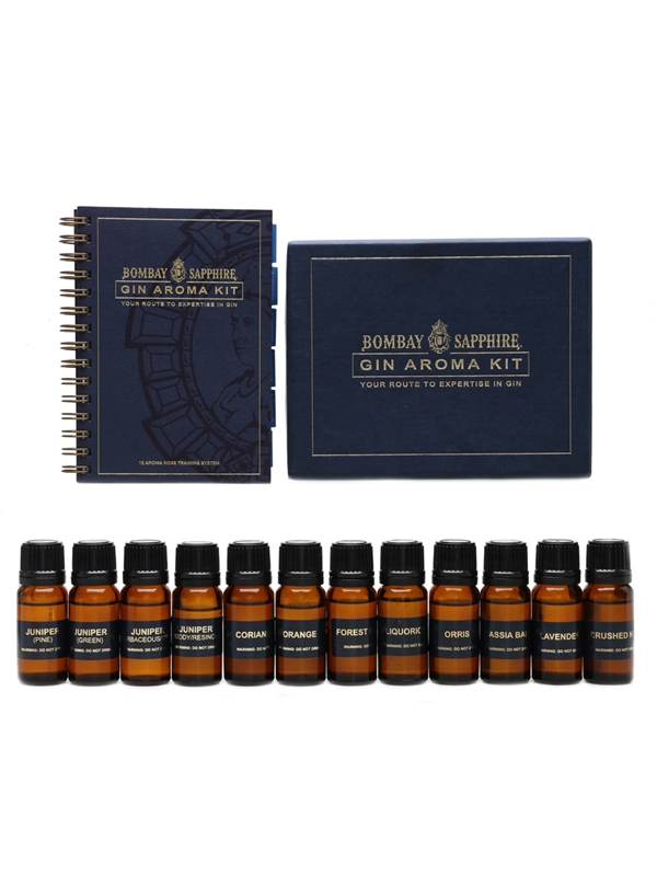 A Bombay Sapphire Gin Aroma Kit, Your Route to Expertise in Gin. This contains 12 aroma samples, and it is designed to develop your aroma recognition skills.