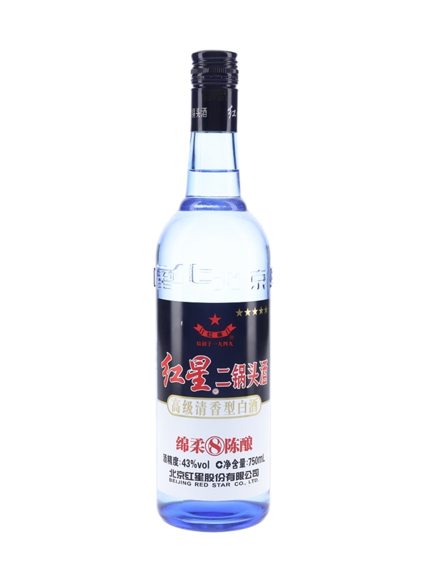 A bottle of Chinese Erguotou Red Star.