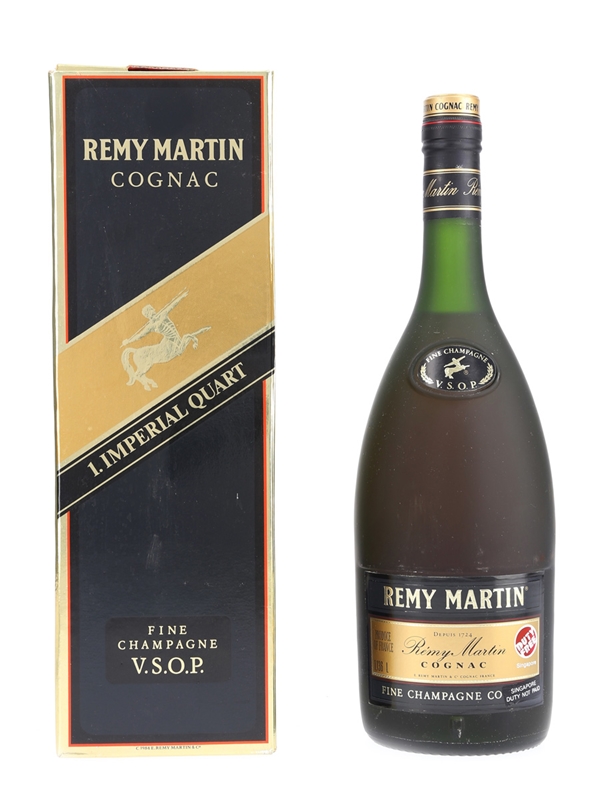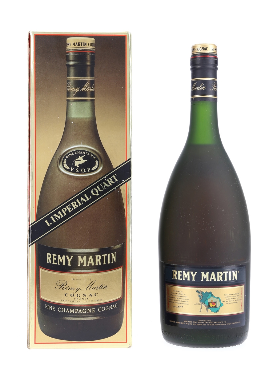 A 113.6cl bottle of Rémy Martin VSOP Fine Champagne Cognac. This was bottled for the Singapore duty free shops, we estimate in the 1980s.