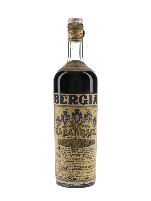 A bottle of Bergia Olio Rabarbaro, a rhubarb liqueur made by Bergia since 1870. We estimate this was bottled in the 1970s.