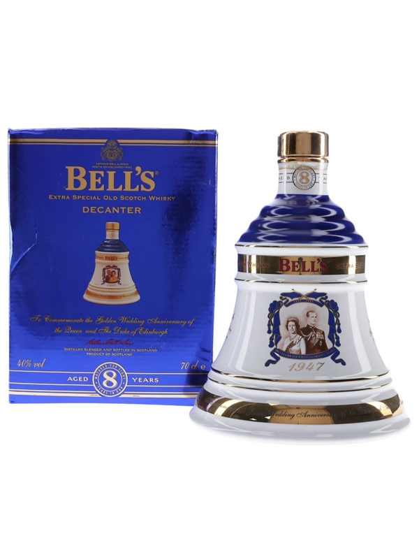 A Bell's Decanter released in 1997 to celebrate the Golden Wedding Anniversary of Queen Elizabeth II and the Duke of Edinburgh.