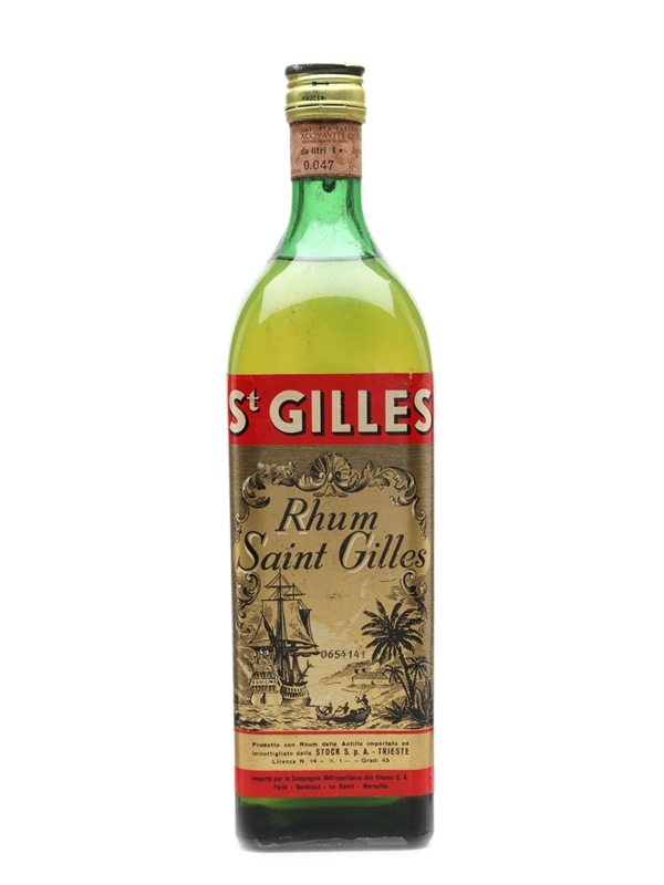 A bottle of Saint Gilles Rhum. This was produced in the Caribbean and bottled by Stock, the renowned Italian liqueur producer. We estimate this was bottled in the 1960s.