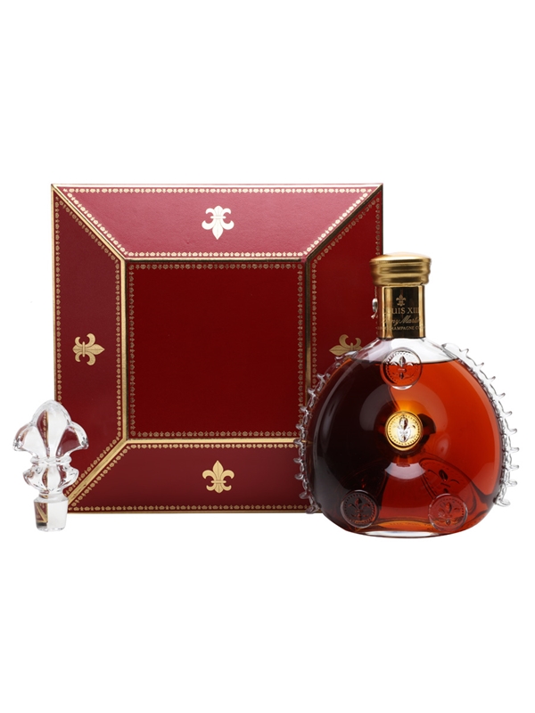 A bottle of Remy Martin Louis XIII Cognac, presented in a Baccarat crystal decanter with stopper. This is composed of Grande Champagne eaux-de-vie aged between 40 and 100 years and is presented in a Baccarat crystal decanter. We estimate this was bottled in the 1980s.