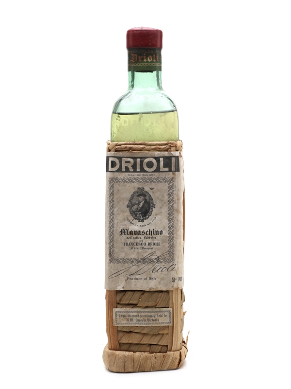 Maraschino liqueur is made from the Marasca cherries grown along the Dalmatia coast, Croatia. It was first produced on an large scale by Venetian merchant Francesco Drioli. The traditional square green bottles were originally produced by Murano, and the straw covering, known as a fiasco, was introduced to protect the bottles during transit.An old bottle of Drioli Maraschino, which we estimate is from the 1960s.