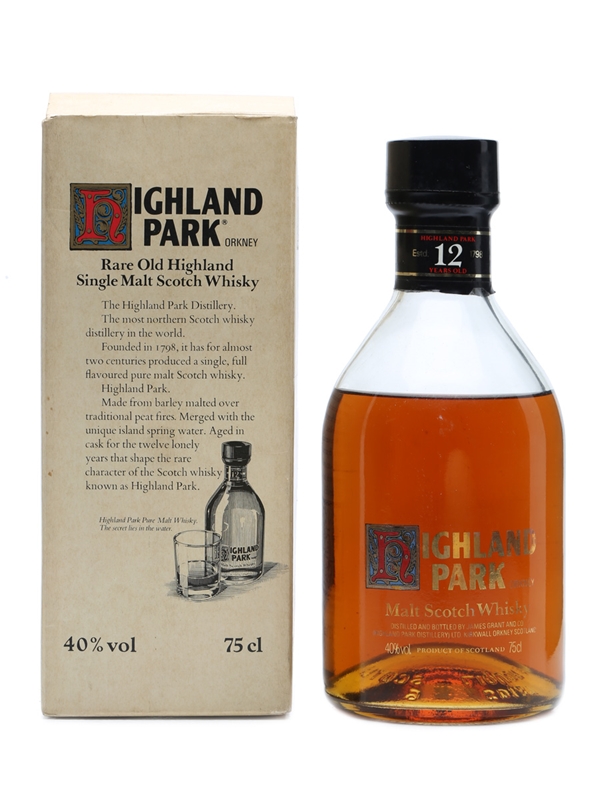 An old boxed bottling of Highland Park's massively popular 12-year-old single malt whisky.