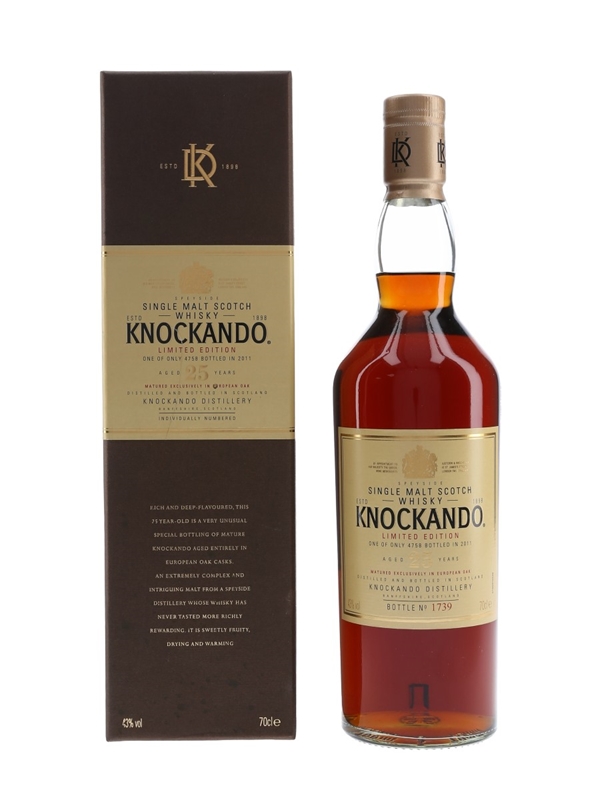 A limited edition bottle of Knockando 25 Year Old. This was matured in European oak casks and bottled in 2011.