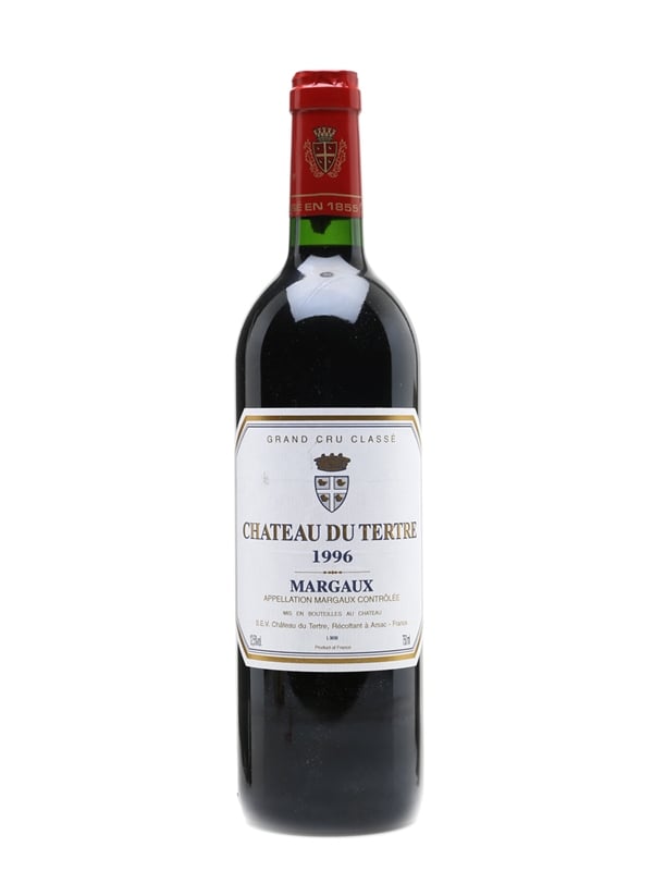A bottle of 1996 Château du Tertre from Bordeaux's Margaux appellation. Du Tertre is a 52 hectare estate planted with 43% Cabernet Sauvignon, 33% Merlot, 19% Cabernet Franc and 5% Petit Verdot, with some plots dating back to the early 1960s.