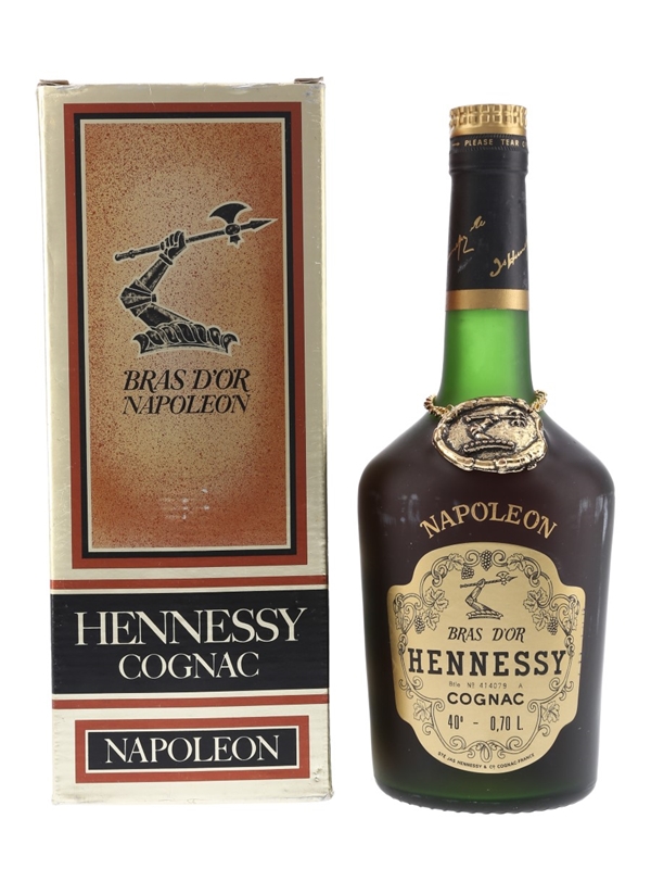 A bottle of Hennessy Napoleon Bras d'Or Cognac. We estimate this was bottled in the 1970s.
