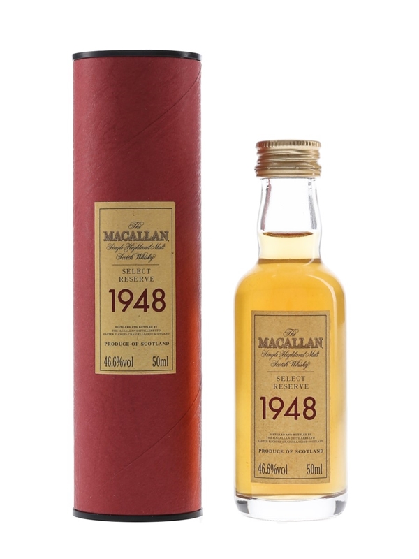 A miniature bottle of The Macallan 1948 Select Reserve.