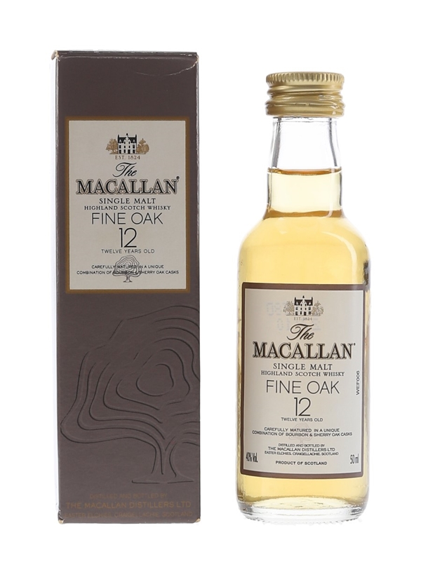 A bottle of The Macallan 12 Year Old from the Fine Oak range. This was matured in a combination of bourbon and sherry casks.