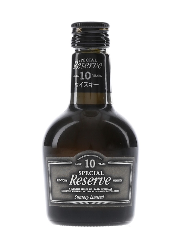 A bottle of Suntory Special Reserve 10 Year Old whisky.