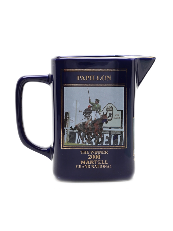 A limited edition ceramic water jug commemorating the winner of the Martell Grand National 2000, Papillon, ridden by Ruby Walsh. This was designed and manufactured for Martell by Seton Potteries, Cornwall.