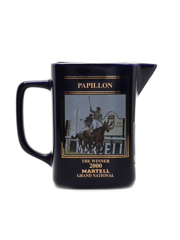 A limited edition ceramic water jug commemorating the winner of the Martell Grand National 2000, Papillon, ridden by Ruby Walsh. This was designed and manufactured for Martell by Seton Potteries, Cornwall.