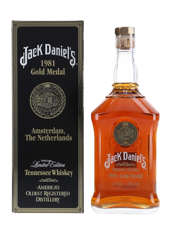 A litre bottle of Jack Daniel's released to celebrate the gold medal won in 1981 at the Institut Pour Les Selections De La Qualité in Amsterdam. This is the seventh release in the Gold Medal series.