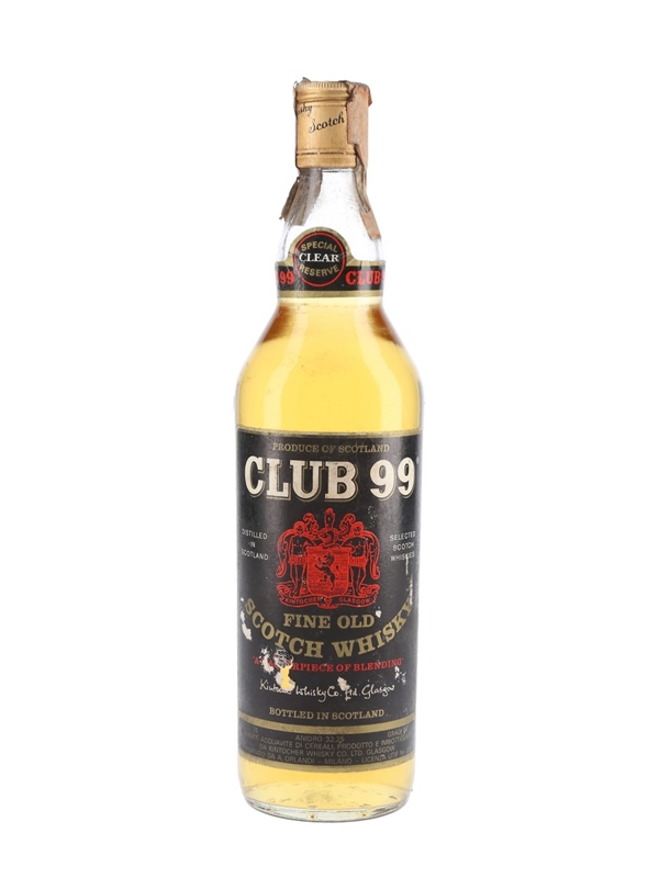 A bottle of Club 99 Fine Old Scotch whisky, produced by Kintocher Whisky Co. Ltd. This was bottled for the Italian market and imported by Orlandi, we estimate in the 1970s.
