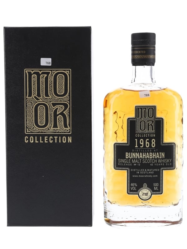 A bottle of Bunnahabhain 42 Year Old. This was distilled on 2 December 1968, matured in a first fill sherry butt, and bottled 14 January 2011 by MO ÒR Whisky as a part of the MO ÒR Collection.