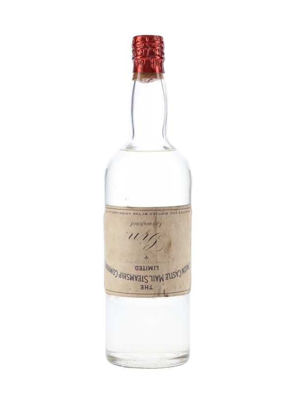 A bottle of The Union Castle Mail Steamship Company Limited unsweetened gin selected and bottled by the Union Castle Line. We estimate this was bottled in the 1950s to early 1960s.