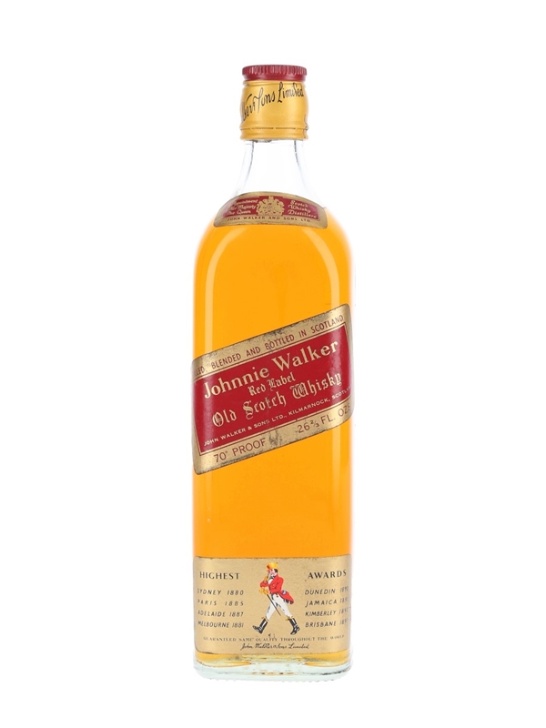 A bottle of Johnnie Walker Red Label, the world's best-selling Scotch whisky. We estimate this was bottled in the 1970s.