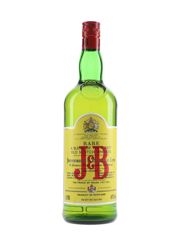 A litre bottle of J&B Rare blended Scotch whisky. This was bottled at 47% ABV for duty free stores.