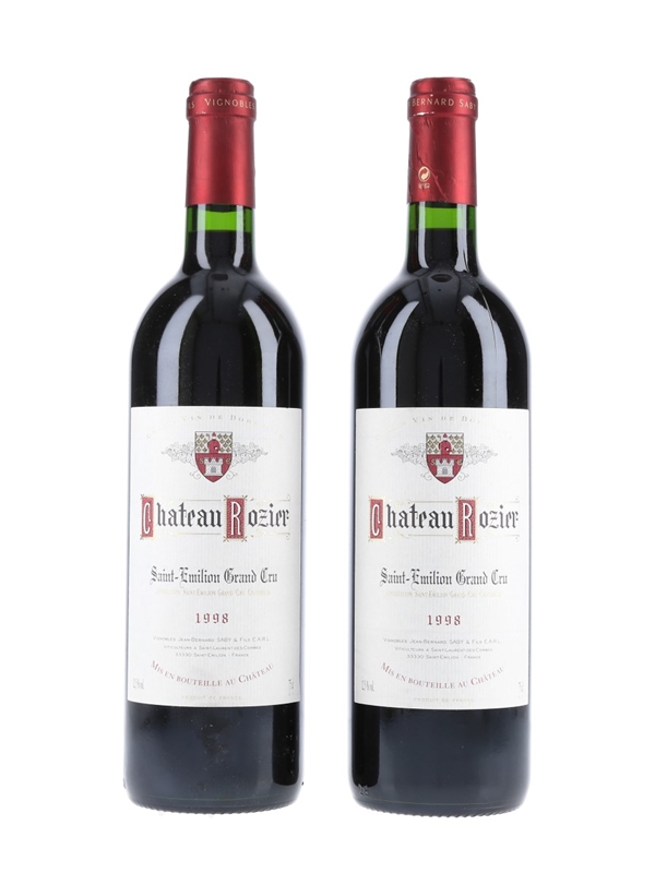 This lot contains two bottles of 1998 Château Rozier Saint-Émilion Grand Cru red wine from Bordeaux.