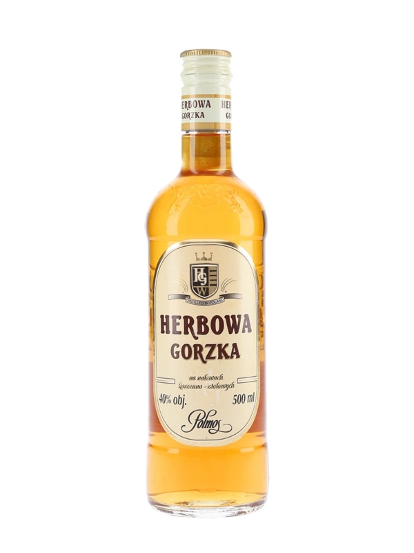A 50cl bottle of Polmos Herbowa Gorzka (herbal bitter) liqueur from Poland.