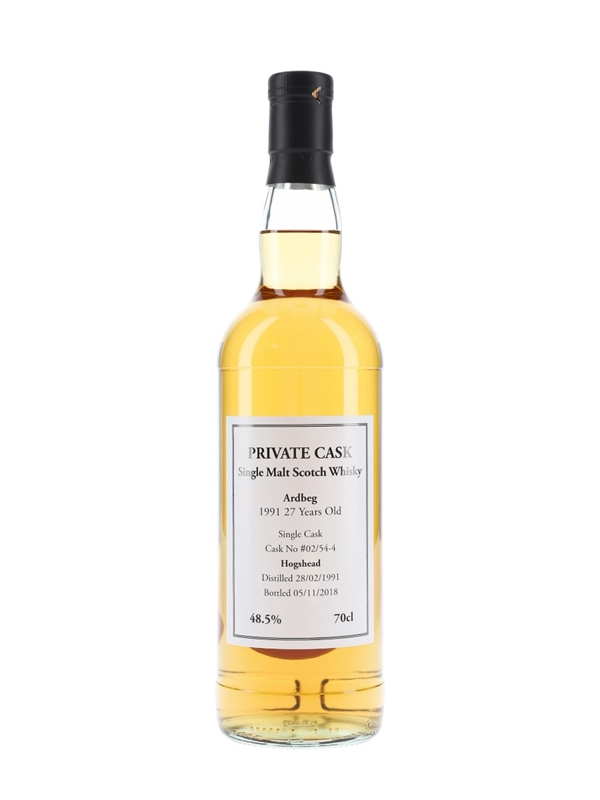 A private cask bottling of Ardbeg 27 Year Old. This was distilled on 28 February 1991, matured in a single hogshead, and bottled at cask strength on 5 November 2018.