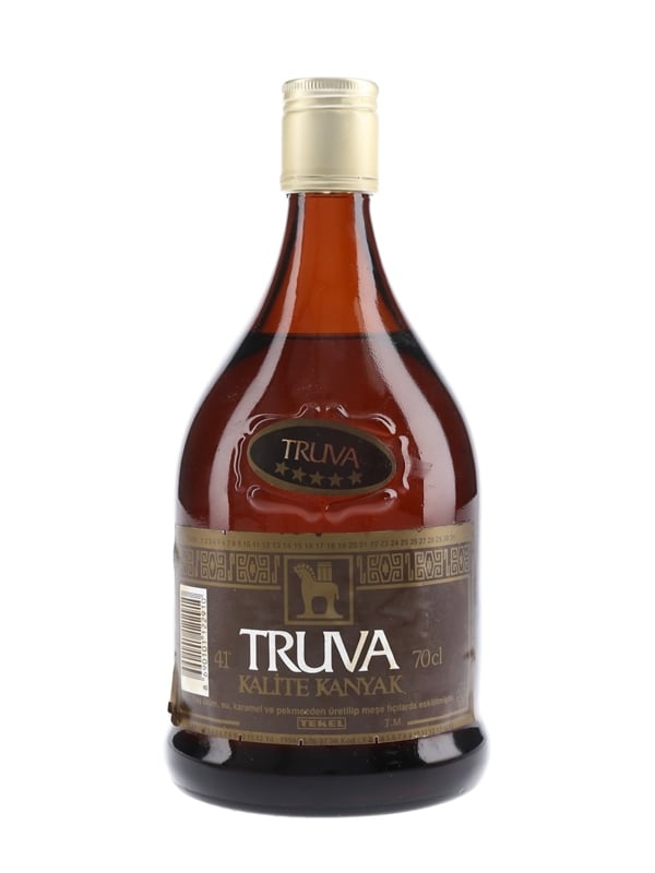 A bottle of Truva Kalite Kanyak Brandy from Turkey. We estimate this was bottled in the mid 1990s.